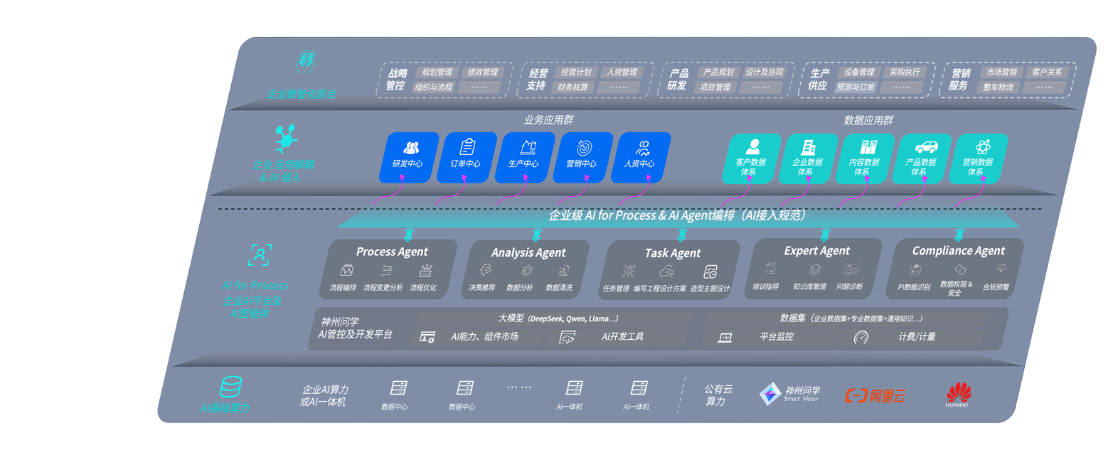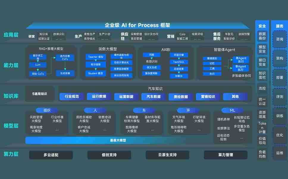 龙门国际问学智车解决方案是一套基于AI技术的汽车行业智能化系统,,,,覆盖从底层算力到顶层AI应用的全栈方案。。方案由算力层、、模型层和应用层组成:算力层,,,方案支持多种一体机配置,,具备云端灵活部署、、、多云适配以及动态优化计算资源的能力;模型层,,,,龙门国际问学平台版提供了企业级AI应用一站式构建与管理平台,,,,支持基于后训练强化技术的汽车企业专属模型的训练、、、、评测和运营;应用层,,,,龙门国际问学DeepSeek版提供包括超级员工、、智能招采、、、智能营销、、、、智能客服、、、AI for BI等一系列解决方案,,,,可助力汽车行业实现数字化转型,,,,让管理更智能、、响应更敏捷。。